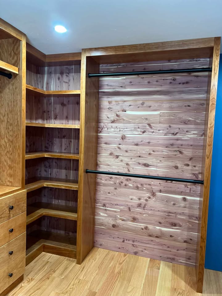 WE ARE THRILLED TO SHOWCASE THE INCREDIBLE WORK OF ONE OF OUR RETURN CLIENTS! USING OUR PREMIUM CHERRY AND OAK PLYWOOD, THEYβVE CREATED STUNNING, CUSTOM-DESIGNED CLOSETS THAT PERFECTLY BLEND FUNCTIONALITY AND ELEGANCE.